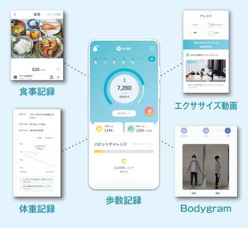 QOLismとは、食事や運動の記録機能などにより、健康的な生活習慣が自然と身につくように設計されたアプリです。