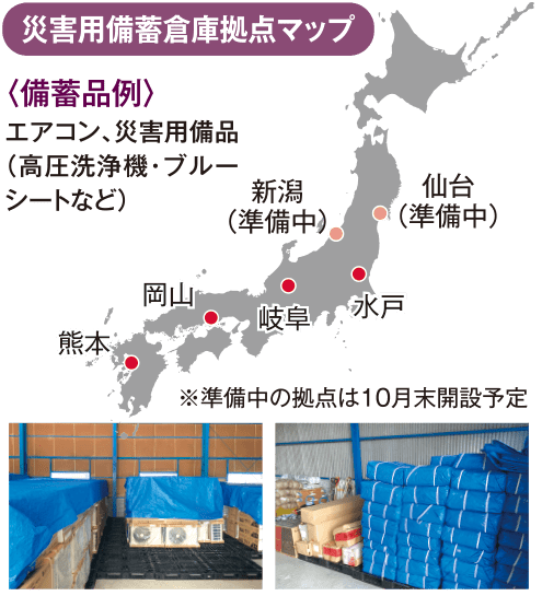 そのため、災害対策が非常に重要となっており、管理建物を防災の拠点とした、非常用物資の備蓄を進めています(災害用備蓄数4拠点53,261個※2023年9月6日時点)。