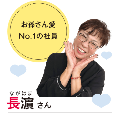 プライベートでは5人のお孫さんと全力で遊び、お孫さん愛いっぱいな長濵さん! 元気な明るさと優しさでお客様を虜にします!