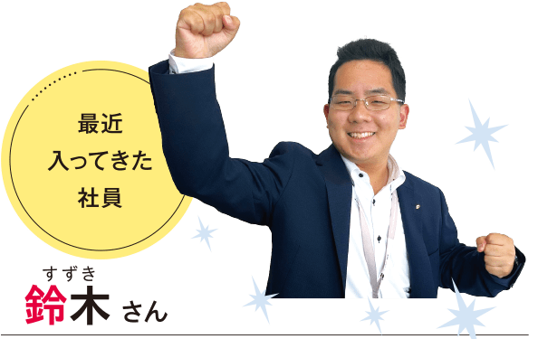 フレッシュなパワーあふれる今期入社学卒36期生、鈴木さん! 笑顔でお客様のところへ日々通っています。先輩社員に負けないという強い気持ちで、目指せ初挙績!!