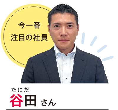 個性と笑顔でお客様を魅了し続ける、谷田課長! 契約実績確保に向けて、課員と共に日々奮闘中。毎日が勝負です!!