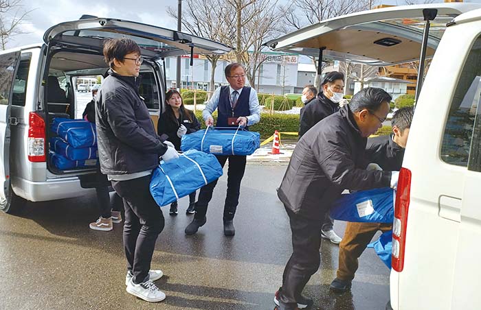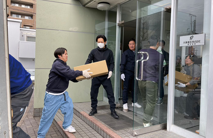2024年1月1日(月)、石川県能登地方を震源とする最大震度7の大地震が発生しました。石川県内の当社管理受託建物(全2,204棟)は、倒壊など大きな被害はなかったものの、金沢支店では事務所の床がひび割れ、周辺の歩道にも陥没や隆起が発生。いい部屋ネット七尾店も、駐車場スペースの陥没や隆起、クロスの剥がれなど店舗内が破損しました。自らが被災した社員もいるなか、震災直後から金沢支店の従業員を中心に復興へ向けて支援活動を行っています。地震発生から間もなく、全国から多くの支援物資が金沢支店に届き始め、金沢支店を拠点として、避難所をはじめ、オーナー様や入居者様へ支援物資をお届けしています。