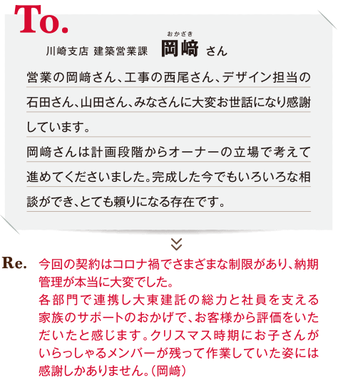 - 子どもが生まれる予定で、お腹の子のため、妻のため頑張ります!