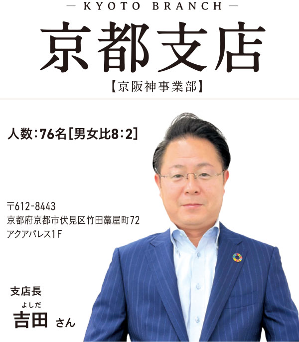 「全員の絆でつなげよう、トップ支店 One Team Kyoto!誇りを胸に、感謝と挑戦。目指せ50億!! 」